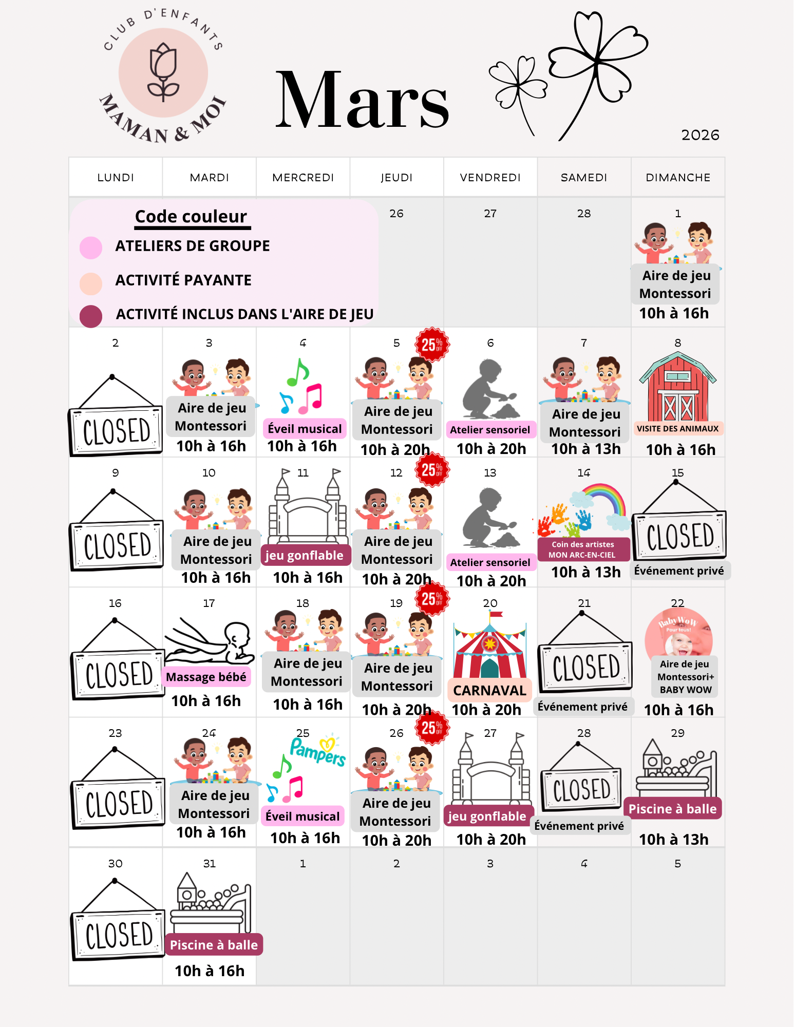 En semaine, aucune réservation n’est requise, vous pouvez venir quand vous voulez. Cependant, le week-end, il est recommandé de réserver, car nous avons un nombre limité d’enfants et de parents autorisés dans l’aire de jeux pour assurer le confort de tous.